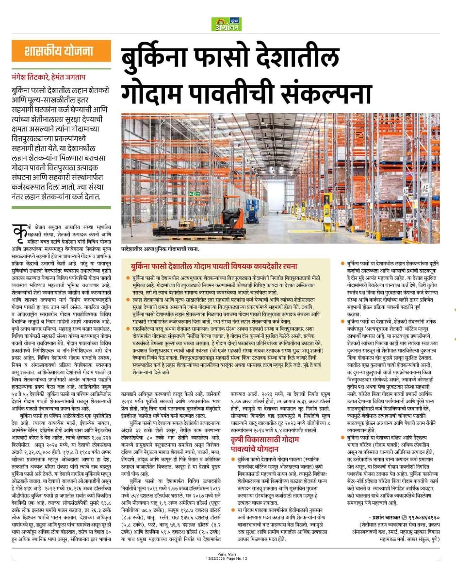 Warehouse Receipt Concept in Burkina Faso - Hon. Shri. Mangesh Titkare, Managing Director, MCDC, Pune |