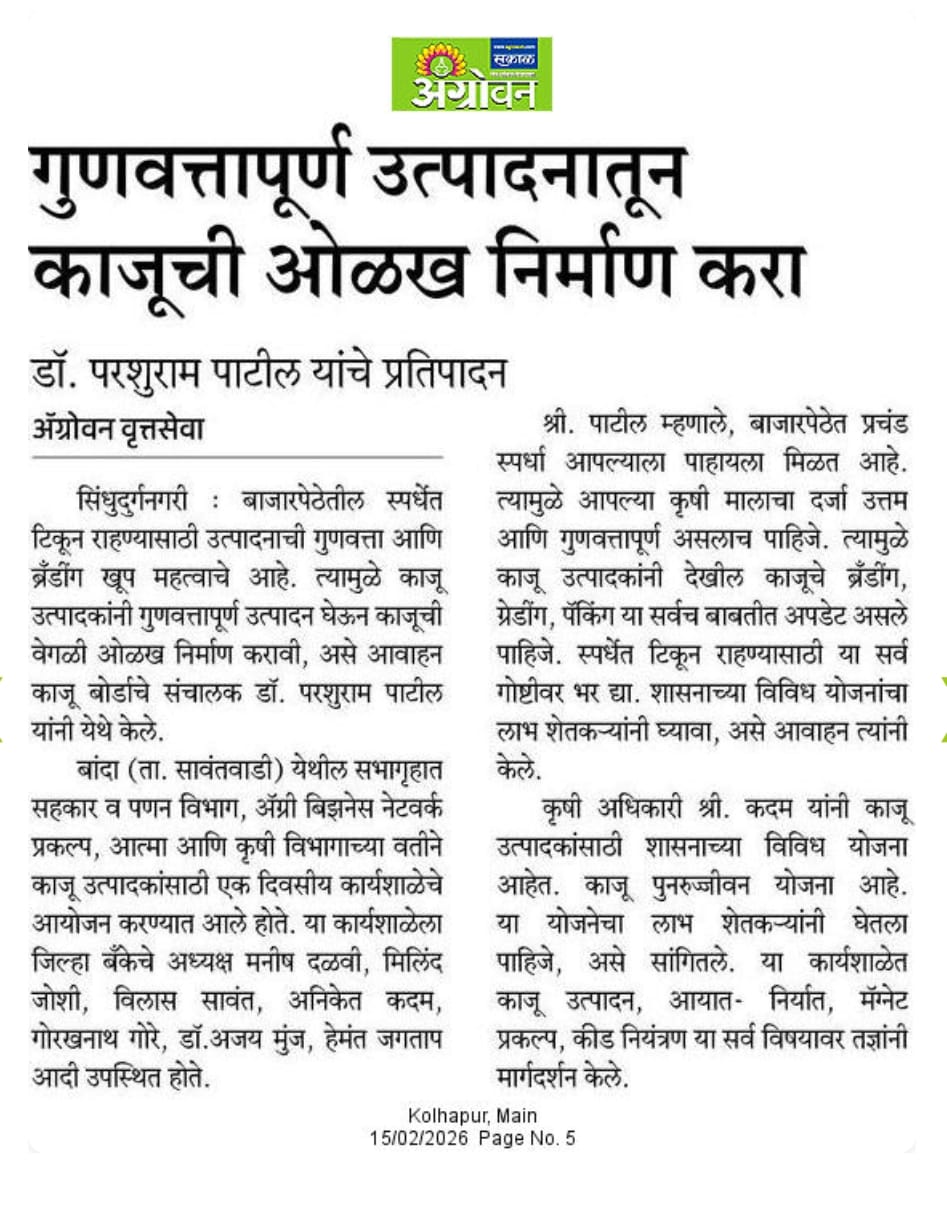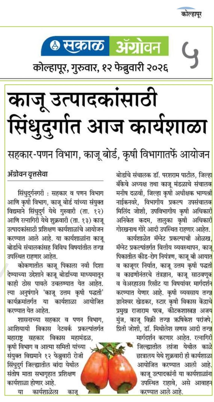 Workshop for cashew nut producers in Sindhudurg today |