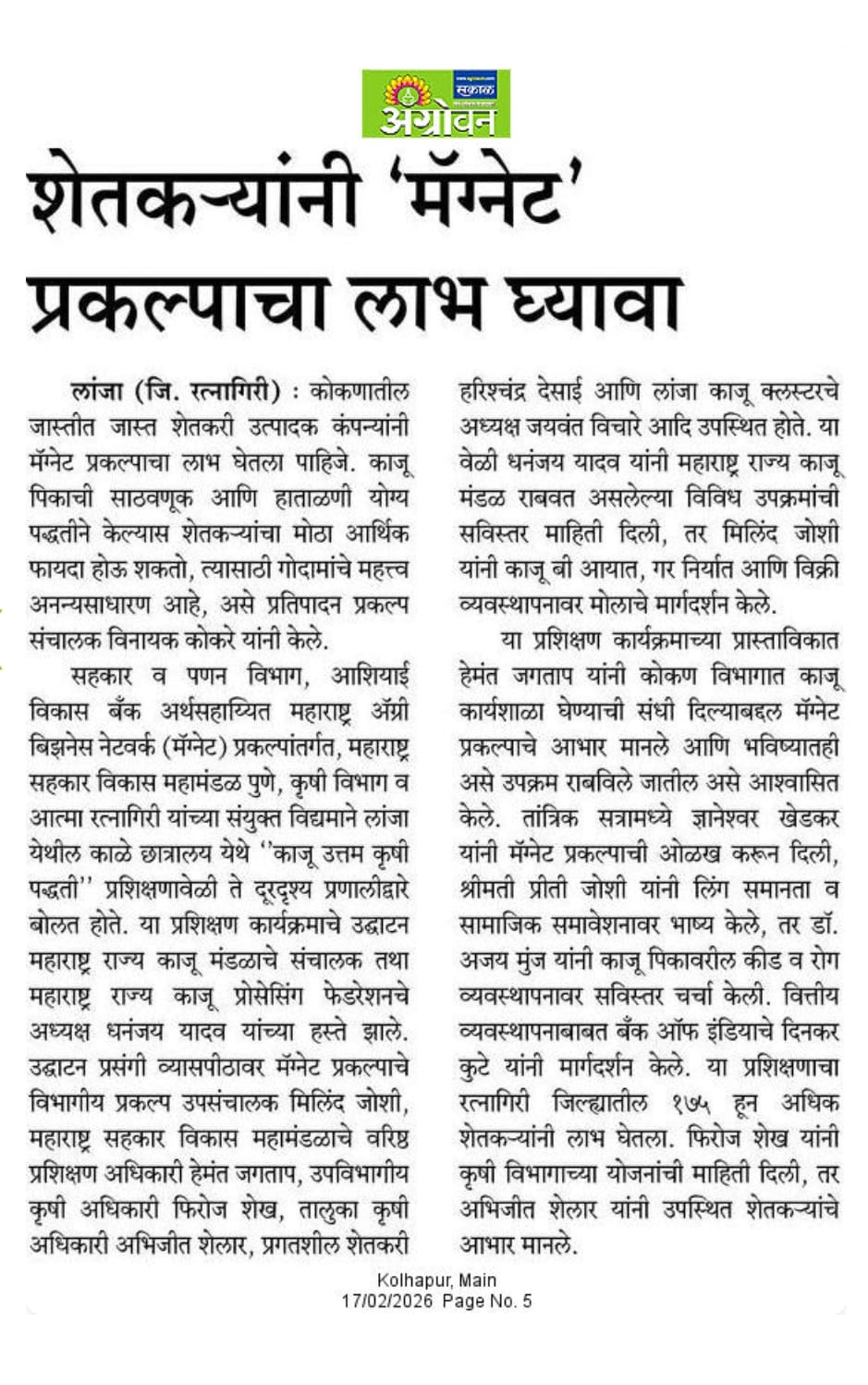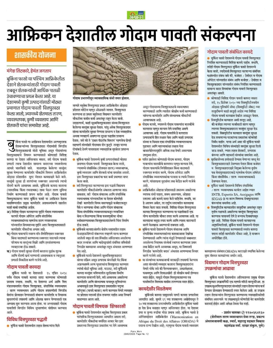 Agricultural Mortgage Management Agency- Agrowon Article |
