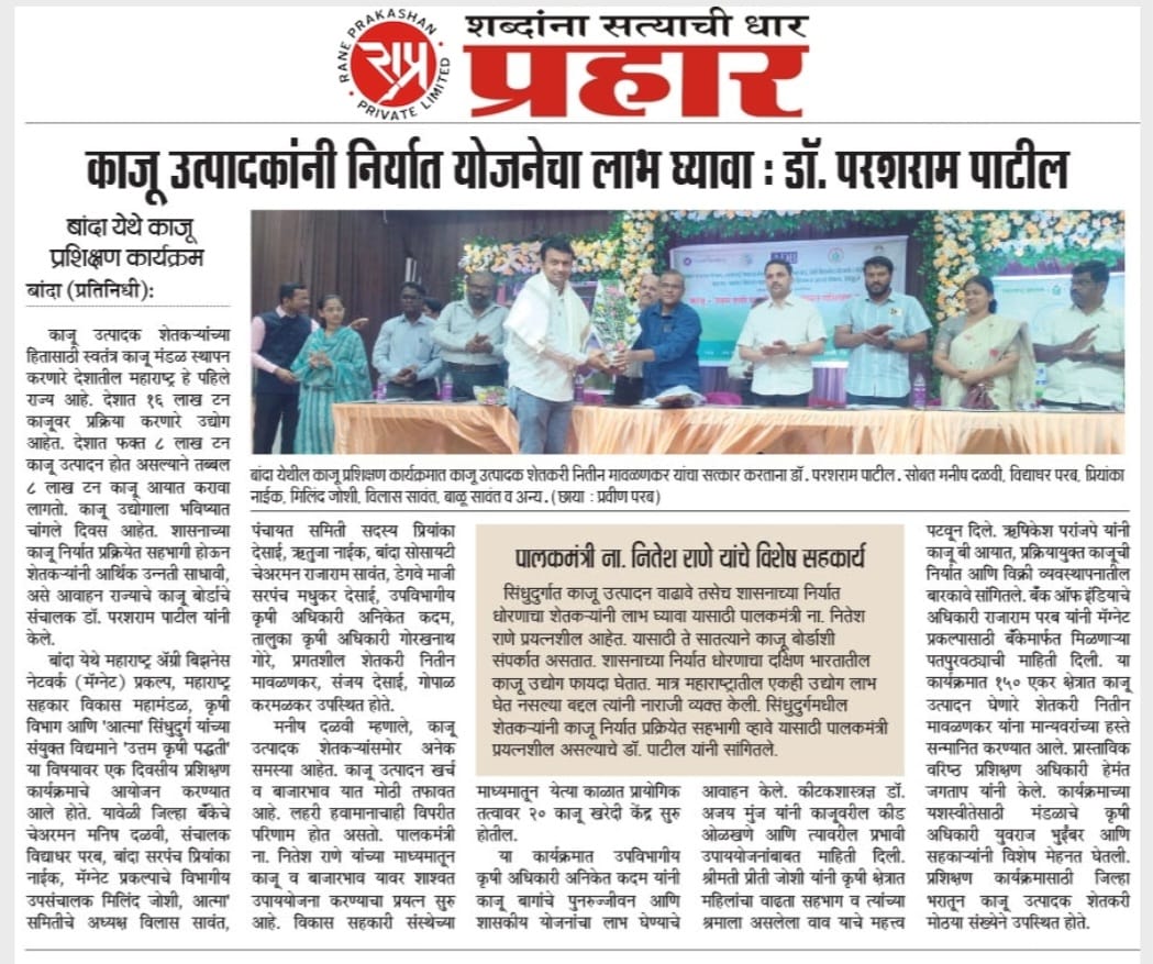 Cashew producers should take advantage of the export scheme - Dr. Parasharam Patil |