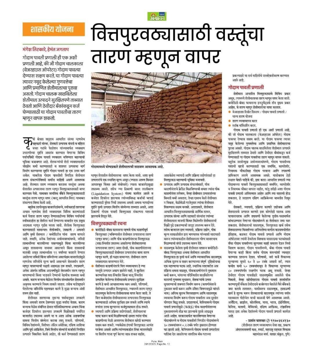 शेतमाल तारण व्यवस्थापन एजेन्सी - ॲग्रोवन लेख |